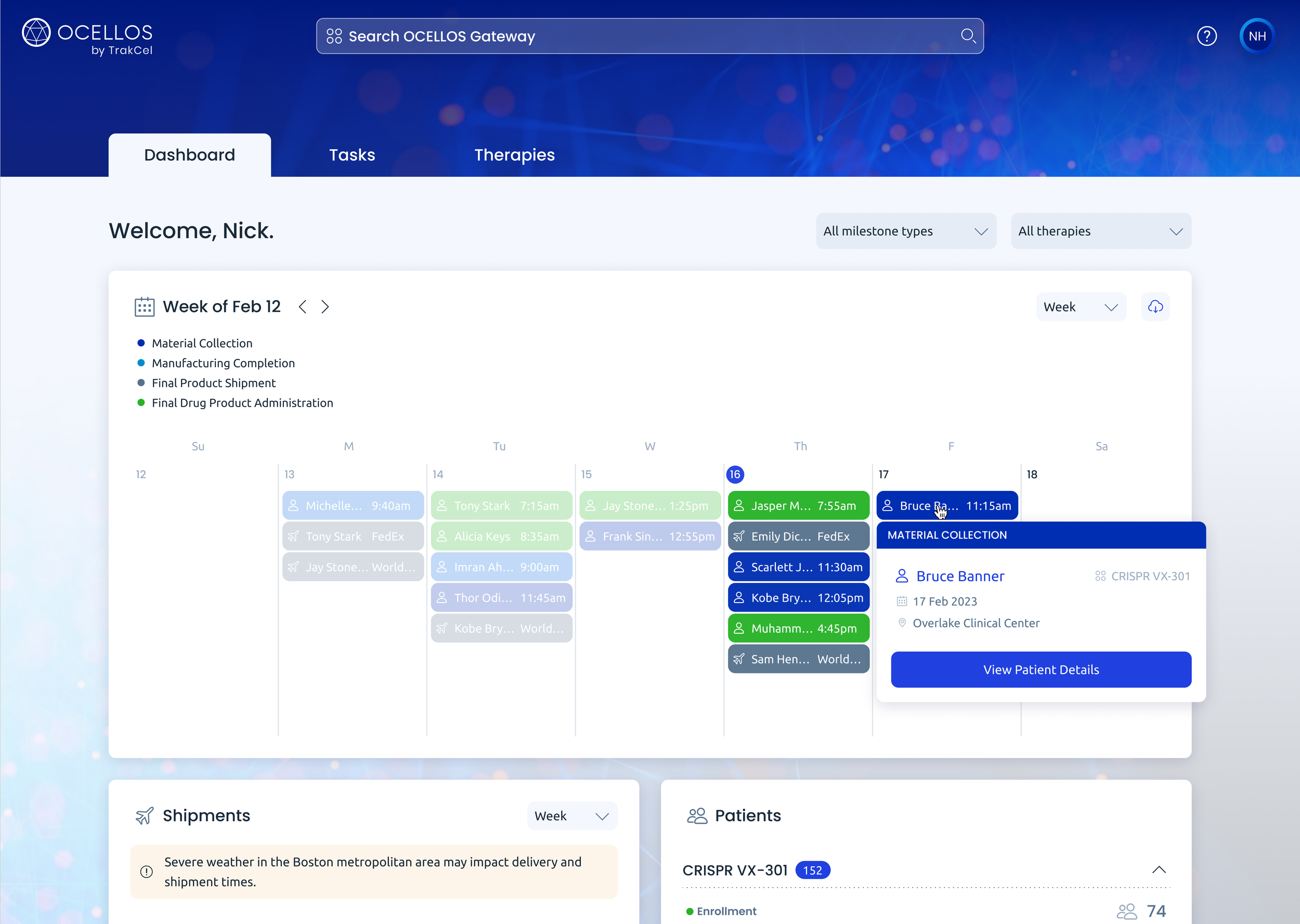 Every patient has a different therapeutic journey, occasionally needing multiple rounds of cell therapy. Redesigning the patient list and their detail pages was a key task allowing clinics to more easily connect to patient journeys.